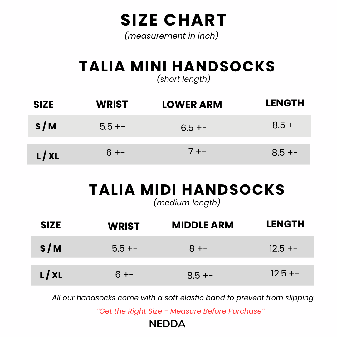Designed for Muslim women, Talia Handsocks is available in two length options.